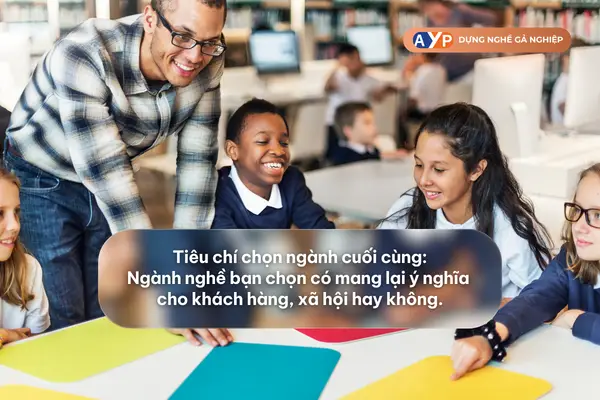 Tiêu chí chọn ngành cuối cùng sau khi bạn tìm ra thế mạnh, xác định môi trường mình yêu thích, thì bạn có tự hào về sản phẩm, dịch vụ mà doanh nghiệp mang lại cho thị trường hay không. Những điều bạn nỗ lực có mang lại ý nghĩa cho khách hàng, cho xã hội hay không.
