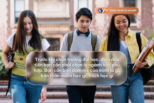 Cho nên trước khi chọn trường đại học, điều đầu tiên bạn cần phải chọn là ngành học phù hợp. Bạn cần biết đam mê của mình là gì, bản thân muốn học gì, thích học gì. Từ đó sẽ lựa chọn ngành học phù hợp bản thân, ngành học sẽ quyết định trường học của bạn.