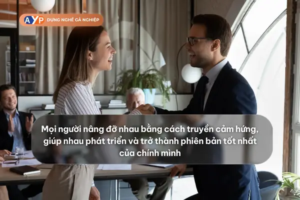 Trong công việc, mọi người nâng đỡ nhau bằng cách truyền cảm hứng, giúp nhau phát triển và trở thành phiên bản tốt nhất của chính mình. Khi mọi người duy trì hình ảnh tích cực về nhau sẽ khiến mọi người càng muốn ở gần nhau hơn để học hỏi lẫn nhau, cùng làm việc tốt hơn mỗi ngày.