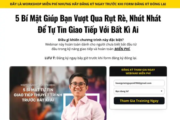 Nếu câu trả lời là có, nhưng bạn lại không biết bắt đầu từ đâu thì có thể tham gia Workshop miễn phí Public Speaking - 5 Bí Mật Giúp Bạn Vượt Qua Sự Tự Ti, Rụt Rè, Nhút Nhát Của Anh Huỳnh Duy Khương.