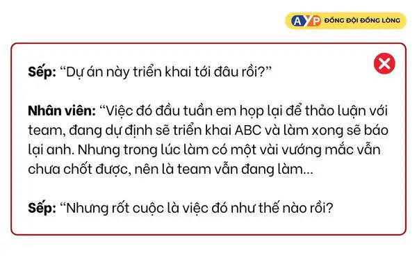 Ví dụ, một nhân viên bị lan man, dài dòng khi báo cáo công việc với Sếp sẽ giống như vậy: