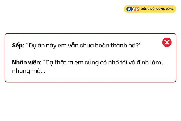 Đôi khi, vì sợ bị Sếp khiển trách hoặc phê bình, nên chúng ta có xu hướng sẽ giải thích nhiều hơn mức cần thiết, từ đó dẫn tới tình huống nói chuyện lan man. Nhưng điều đó lại không hiệu quả.
