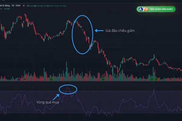 Trong trường hợp này, xu hướng thường thấy là giá cổ phiếu sẽ có khả năng điều chỉnh giảm trở lại. Đối với các nhà đầu tư, đây có thể là dấu hiệu cho thấy đã đến lúc cân nhắc việc bán cổ phiếu để bảo toàn lợi nhuận hoặc tránh rủi ro sụt giảm trong tương lai.