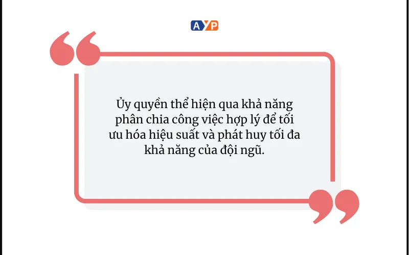 Ủy quyền là kỹ năng lãnh đạo quan trọng, thể hiện qua khả năng phân chia công việc hợp lý để tối ưu hóa hiệu suất và phát huy tối đa khả năng của đội ngũ. Quản lý biết cách ủy quyền hiệu quả sẽ tập trung vào những quyết định chiến lược quan trọng, trong khi nhân viên có cơ hội phát triển kỹ năng và tự tin đảm nhận trách nhiệm. Việc này không chỉ nâng cao hiệu quả công việc mà còn xây dựng đội ngũ gắn kết và chủ động hơn.