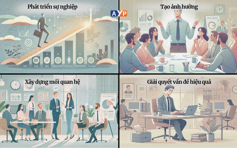 Kỹ năng lãnh đạo là cách bạn giao tiếp, ra quyết định, và giải quyết mâu thuẫn trong công việc. Phát triển kỹ năng này không chỉ làm bạn tự tin hơn mà còn mở rộng cơ hội nghề nghiệp và ghi điểm trong mắt đồng nghiệp.