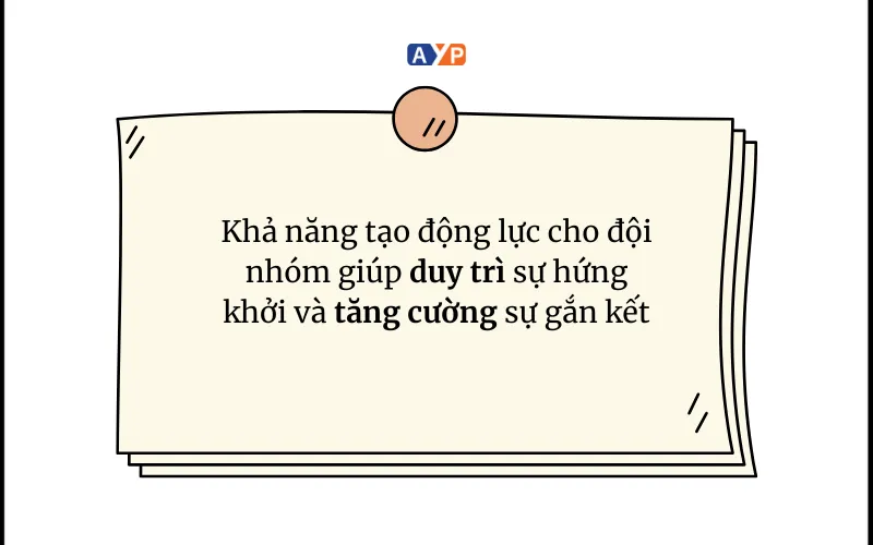 Khả năng tạo động lực cho đội nhóm là một phần thiết yếu trong kỹ năng lãnh đạo, giúp duy trì sự hứng khởi và tăng cường sự gắn kết. Khi đội nhóm được truyền cảm hứng, các thành viên sẽ tự tin đóng góp và cam kết với công việc, ngay cả khi đối mặt với khó khăn. Để tạo động lực hiệu quả, quản lý cần lắng nghe ý kiến của mọi người, công nhận những nỗ lực, và xây dựng môi trường làm việc khuyến khích sự phát triển và cống hiến.