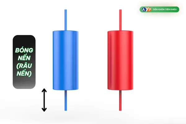 Bóng nến (hay còn gọi là râu nến) là các đường thẳng nhỏ nằm ở phía trên hoặc dưới thân nến, thể hiện giá cao nhất và thấp nhất trong phiên giao dịch.