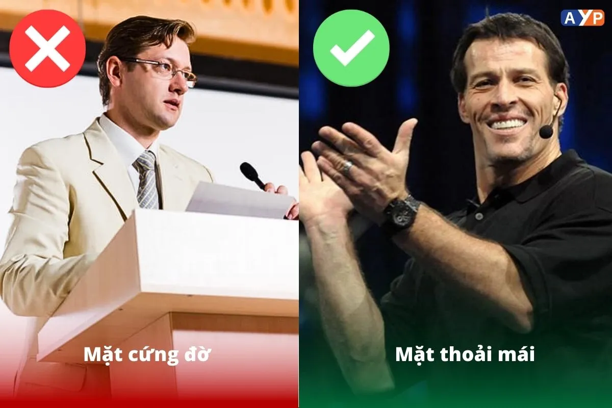 Ví dụ, Tony Robbins thường sử dụng biểu cảm khuôn mặt để thu hút khán giả ngay từ đầu, tạo ấn tượng mạnh mẽ và sâu sắc.