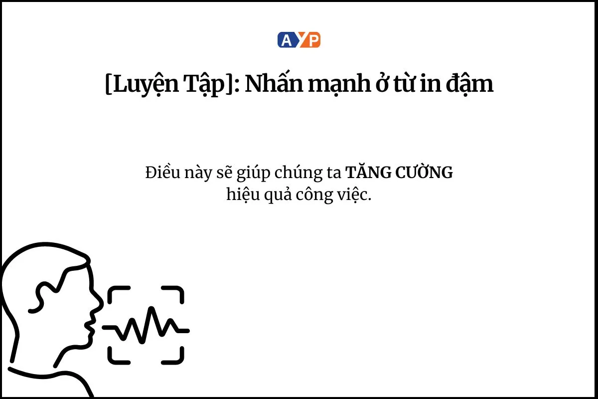 Khi bạn nói: "Sản phẩm này không chỉ tiện lợi mà còn giúp tiết kiệm thời gian!" hãy tăng âm lượng ở từ "tiện lợi" để làm nổi bật lợi ích của sản phẩm.