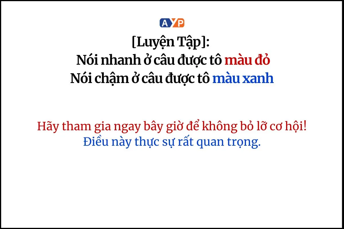 Nếu bạn nói nhanh quá, khán giả sẽ khó theo kịp và không hiểu rõ thông tin bạn muốn truyền đạt. Ngược lại, nếu nói quá chậm, khán giả có thể cảm thấy nhàm chán và mất hứng thú.