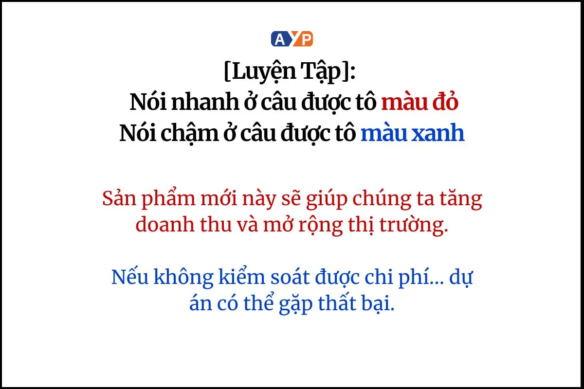 Ngược lại, khi đề cập đến rủi ro trong một báo cáo tài chính, bạn có thể giảm nhịp độ và nói chậm rãi: "Nếu chúng ta không kiểm soát chặt chẽ chi phí... điều này có thể gây ảnh hưởng nghiêm trọng đến lợi nhuận cuối năm."