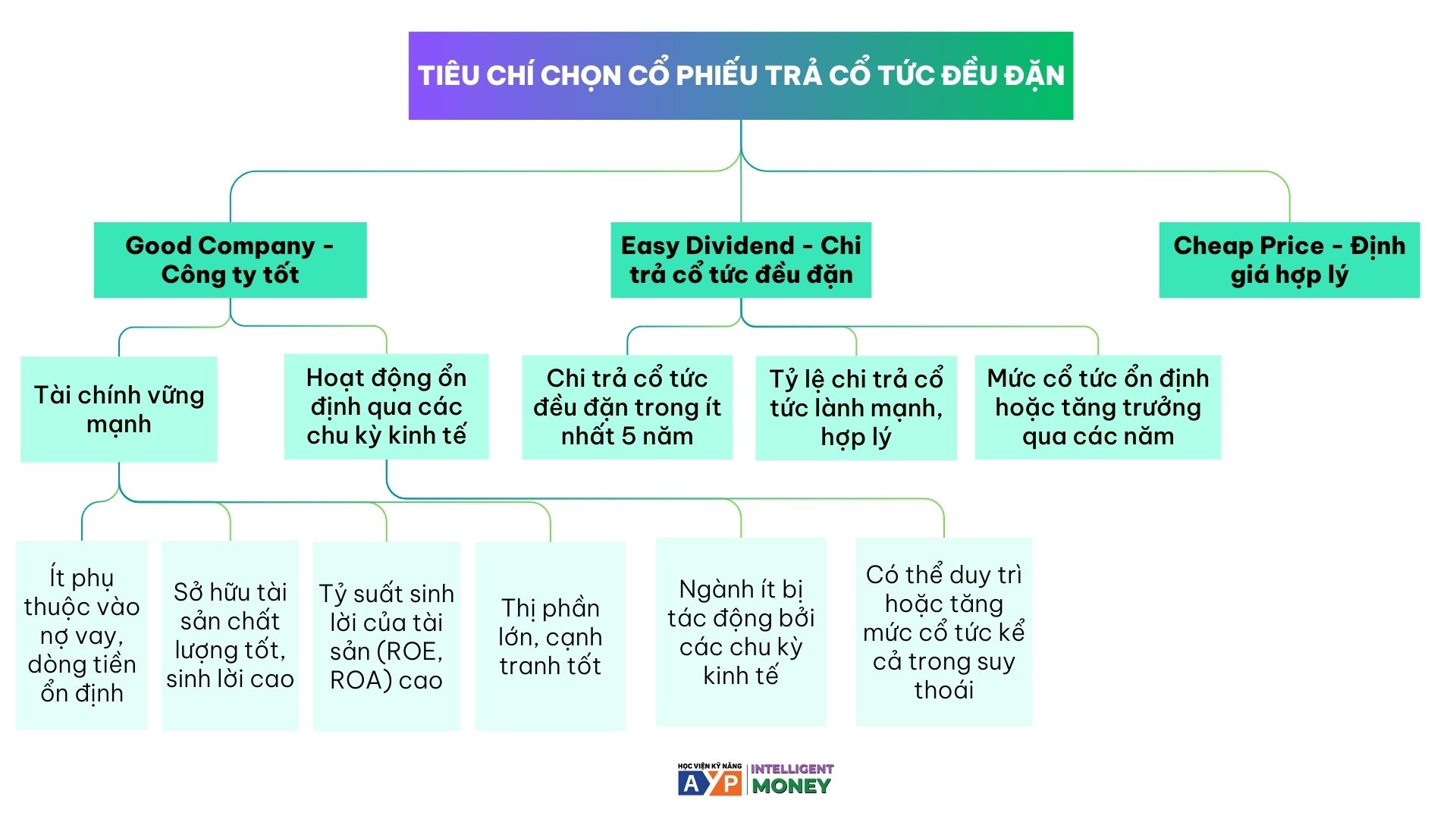 Việc lựa chọn các công ty trả cổ tức đều đặn bằng tiền mặt cần dựa trên những tiêu chí cụ thể nhằm đảm bảo tính ổn định và tiềm năng tăng trưởng dài hạn của khoản đầu tư. Dưới đây là một số tiêu chí để bạn tìm được những cổ phiếu chi trả cổ tức lâu dài và đáng tin cậy: