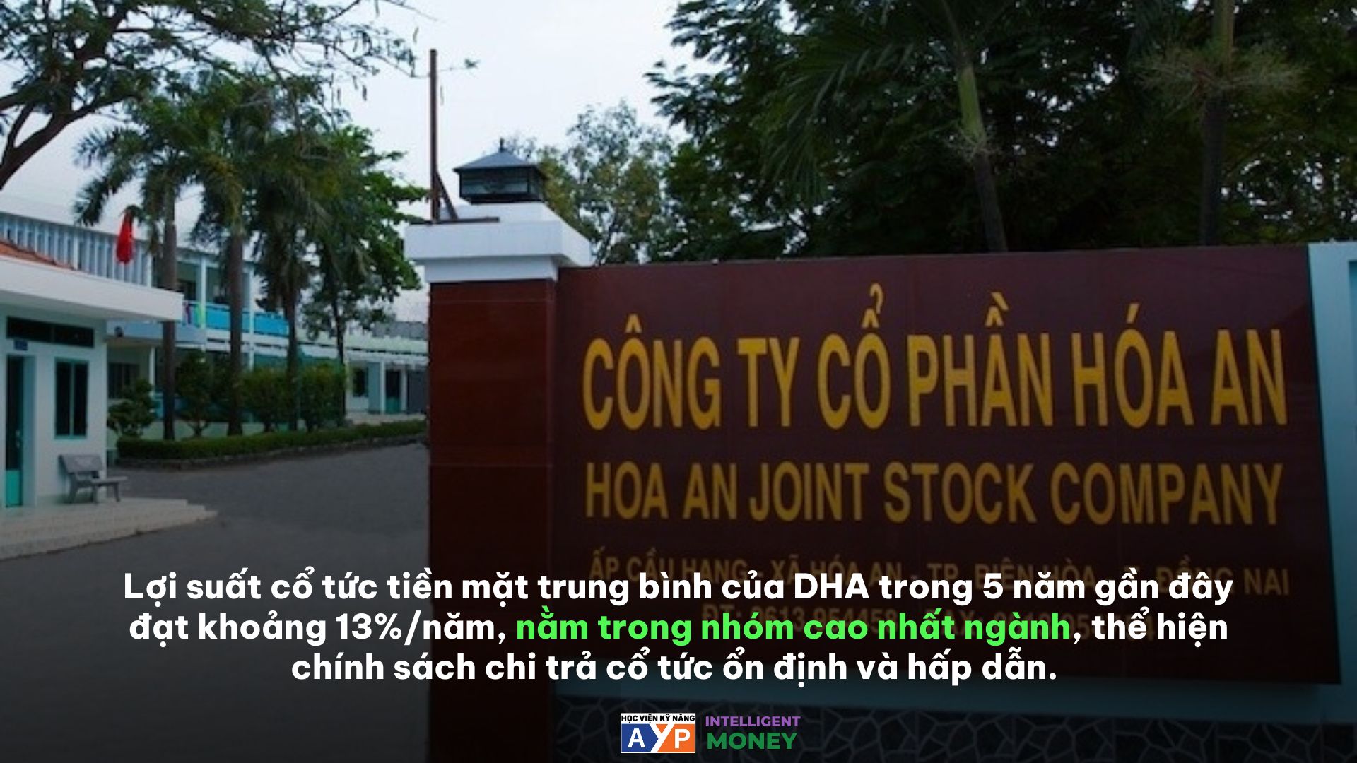 Công ty Cổ phần Hóa An (DHA) là doanh nghiệp hoạt động trong lĩnh vực khai thác và cung cấp vật liệu xây dựng, đặc biệt là đá xây dựng chất lượng cao. Doanh thu năm 2024 của DHA dự kiến đạt 1.500 tỷ đồng, với lợi nhuận sau thuế khoảng 200 tỷ đồng, theo báo cáo từ DSCS. Lợi suất cổ tức tiền mặt trung bình của DHA trong 5 năm gần đây đạt khoảng 13%/năm, nằm trong nhóm cao nhất ngành, thể hiện chính sách chi trả cổ tức ổn định và hấp dẫn.