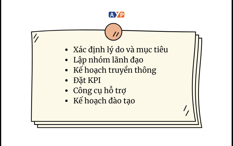 - Cách thực hiện: Xây dựng lộ trình rõ ràng với các mốc thời gian cụ thể, thông báo và giải thích từng giai đoạn để nhân viên hiểu và chuẩn bị.