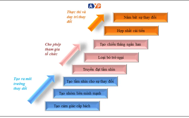 Mô hình này do John Kotter phát triển, chia quy trình thay đổi thành 8 bước:
