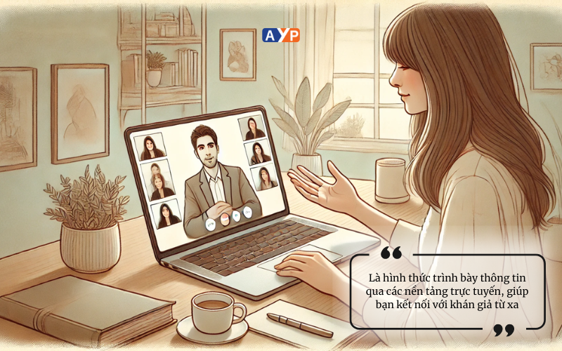 - Thuyết Trình Online Là Gì? Thuyết trình online là hình thức trình bày thông tin qua các nền tảng trực tuyến, giúp kết nối với khán giả từ xa.