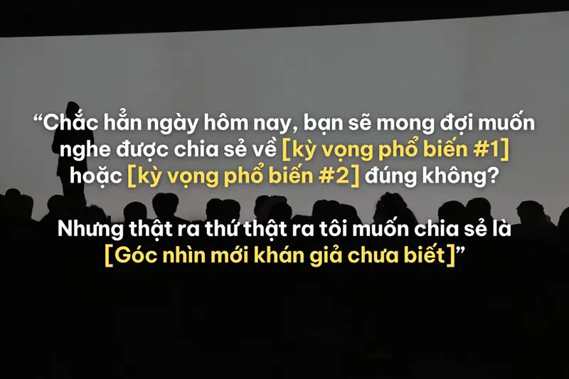“Chắc hẳn ngày hôm nay, bạn sẽ mong đợi muốn nghe được anh chia sẻ về [kỳ vọng phổ biến #1] hoặc [kỳ vọng phổ biến #2] đúng không?