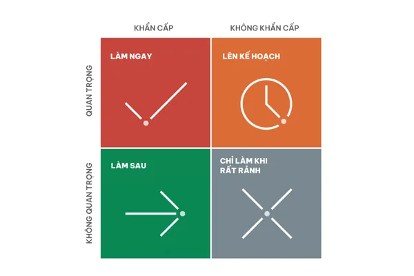 Ma trận Eisenhower giúp bạn phân loại công việc dựa trên 2 tiêu chí: khẩn cấp và quan trọng. Ma trận này có 4 phần: